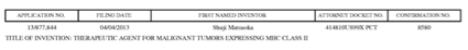 ① 特許 WO2012046745A1 ¬ Mhcクラ スIIを 発現する 悪性腫瘍の治療薬 (国際特許)